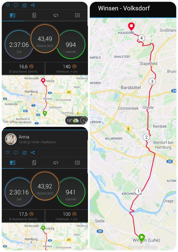 Die leckere Erbsensuppe hat verbrauchte Energie zurück gebracht. Nach einem gemütlichen Essen und Kaffee trinken sind wir den Heimweg angetreten…8 Minuten schneller waren wir, aber wohl hauptsächlich, weil wir die Schiebestrecke in Bergedorf „umfahren“ haben 😎