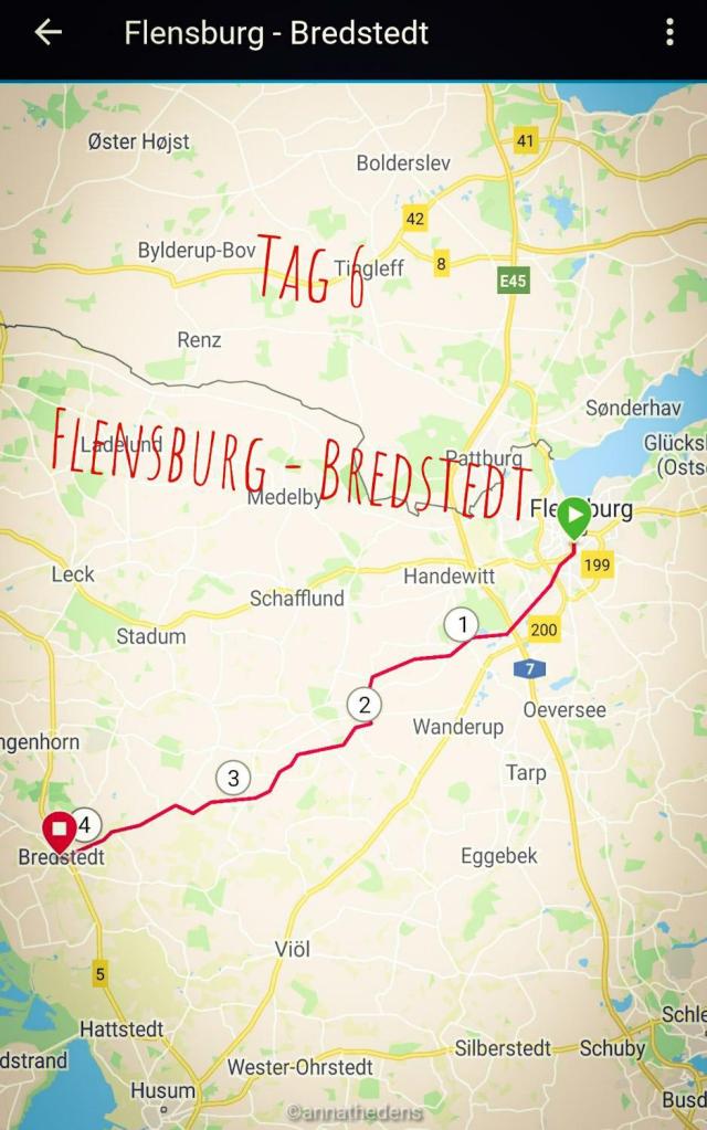 Ohne Zwischenfälle erreichten wir Bredstedt um kurz nach 12 Uhr. Dass man so schnell mit dem Rad von der Ostsee zur Nordsee kommt ist erstaunlich. Unser Zimmer, heute eher eine Ferienwohnung, konnten wir gleich beziehen. Schnell duschen und 30 Minuten später saßen wir im Hotelrestaurant und ließen es uns schmecken. 😎