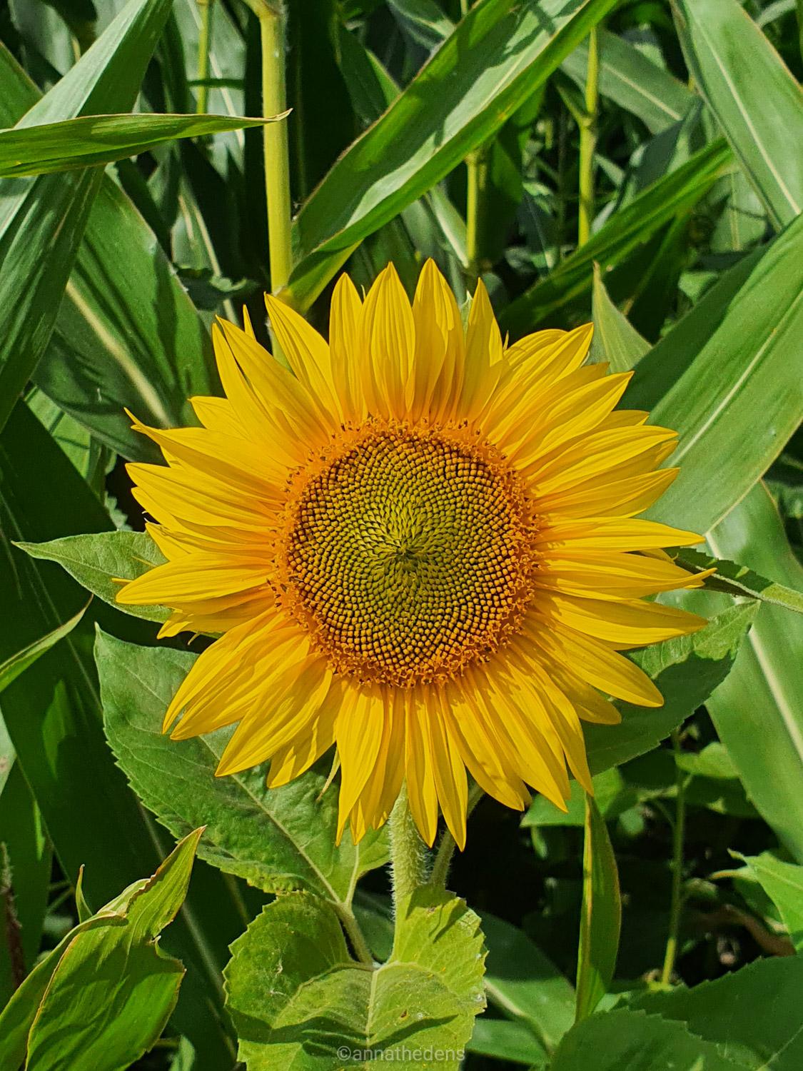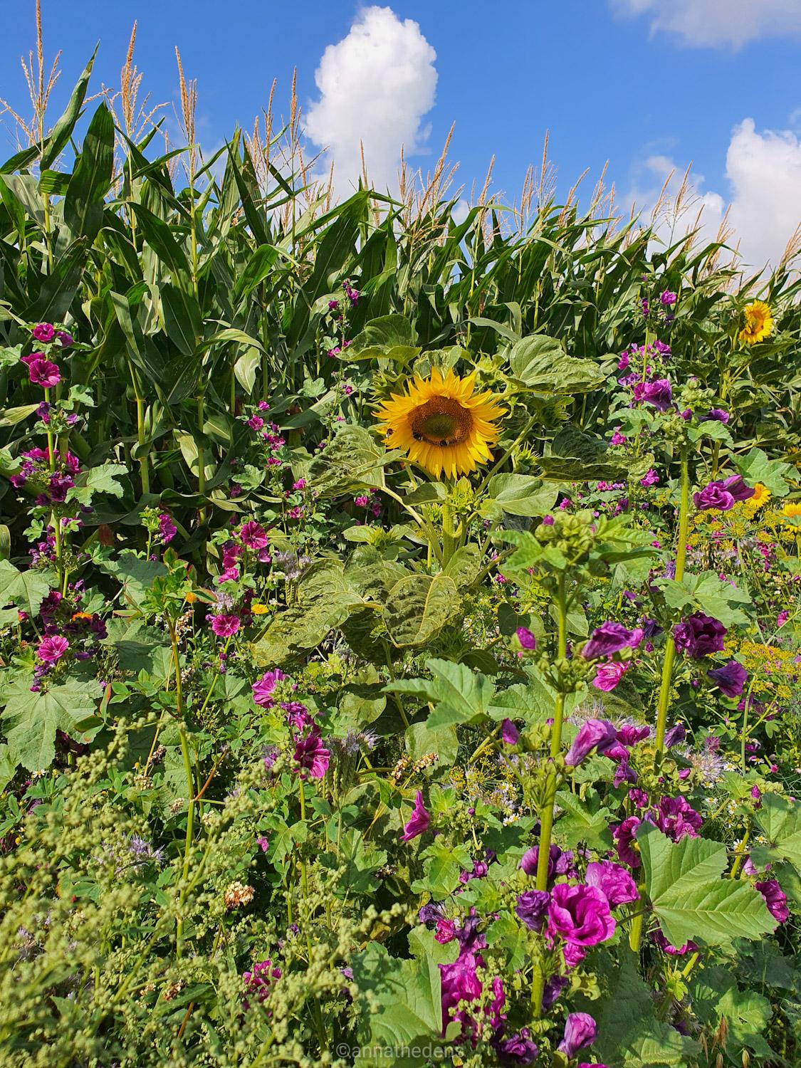 Die Abkürzung hat uns am Wegesrand mit schönen Blühstreifen entlang der Maismonokultur belohnt. Wenn man sich die Zeit zum Betrachten nimmt.