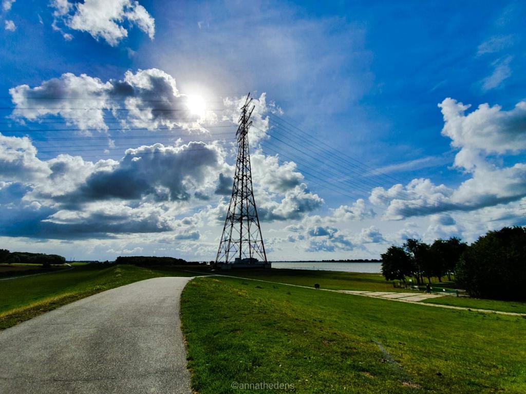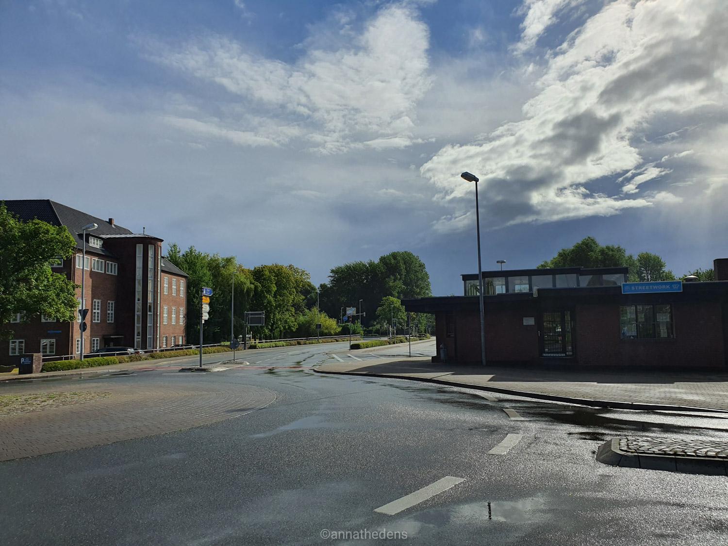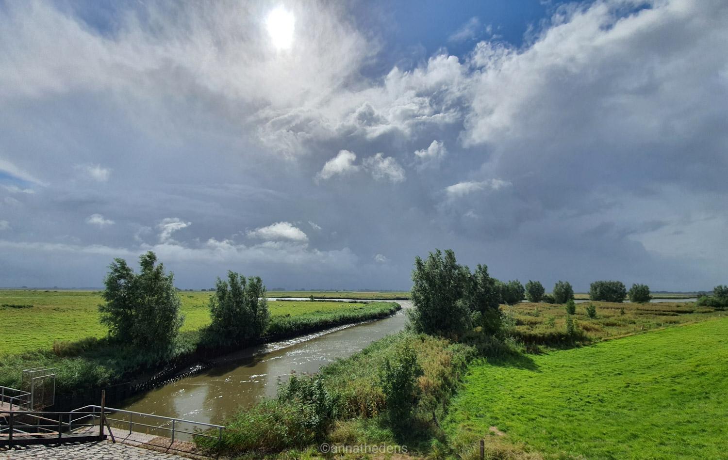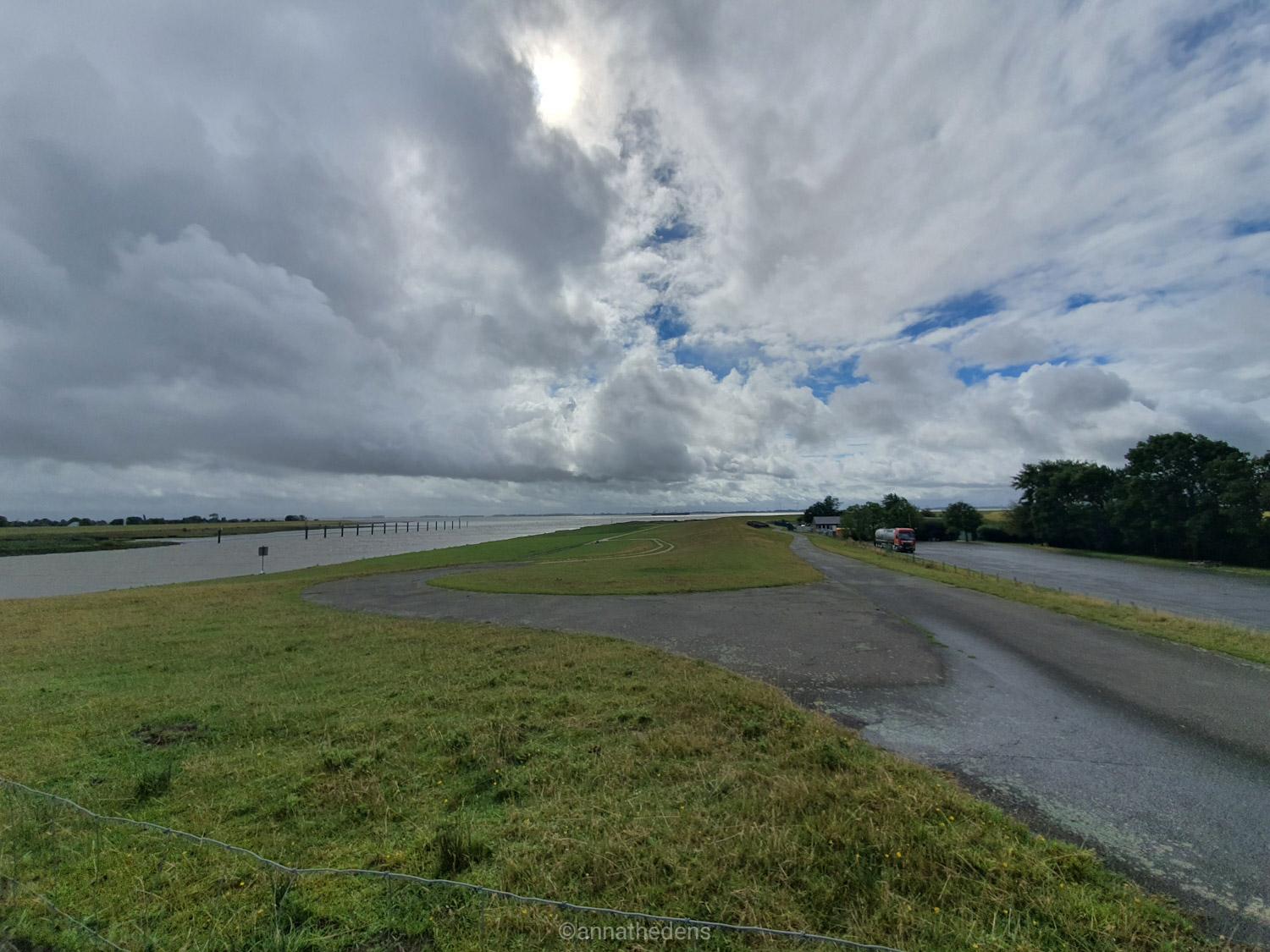 Da wir uns zu sehr auf den sehr schnell wechselnden Himmel konzentriert haben, ist uns dummerweise der Abzweiger nach Friedrichstadt gar nicht aufgefallen. Tolle, dramatische Bilder bot der Himmel…und wir waren so froh trocken zu bleiben…