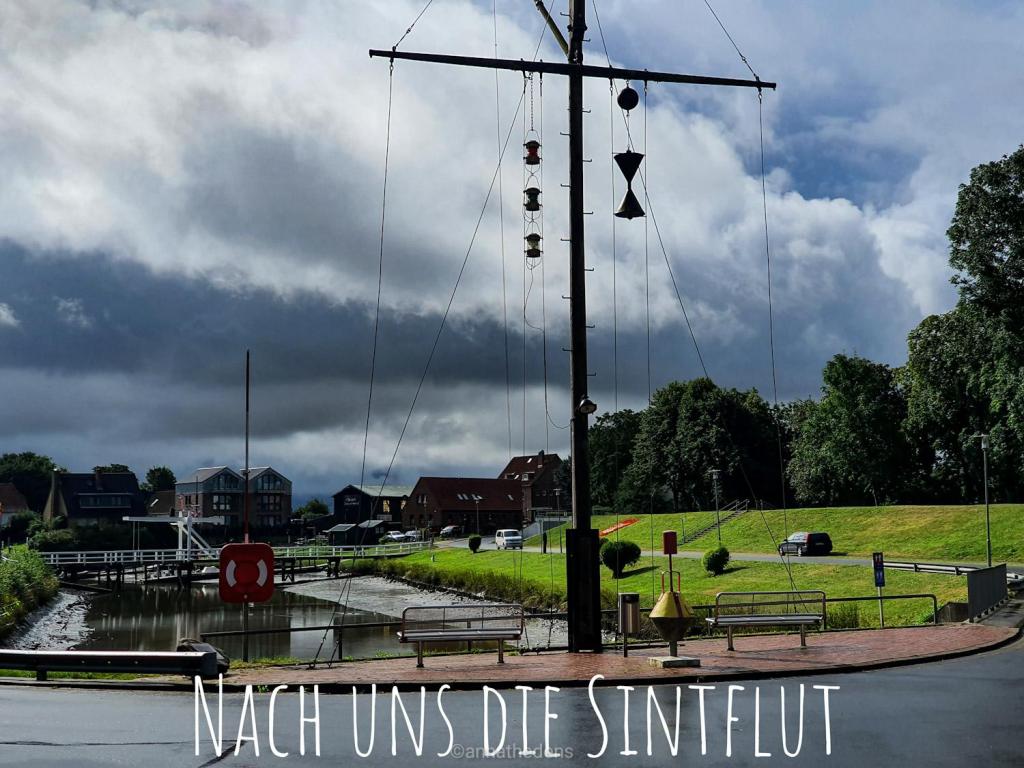 Am Störsperrwerk haben wir Ausblick auf die Elbe gehabt und beobachtet, wie bei einem großer Frachter die Gischt hoch übers Deck fegte…und wir sind mit dem Rad unterwegs 🙄