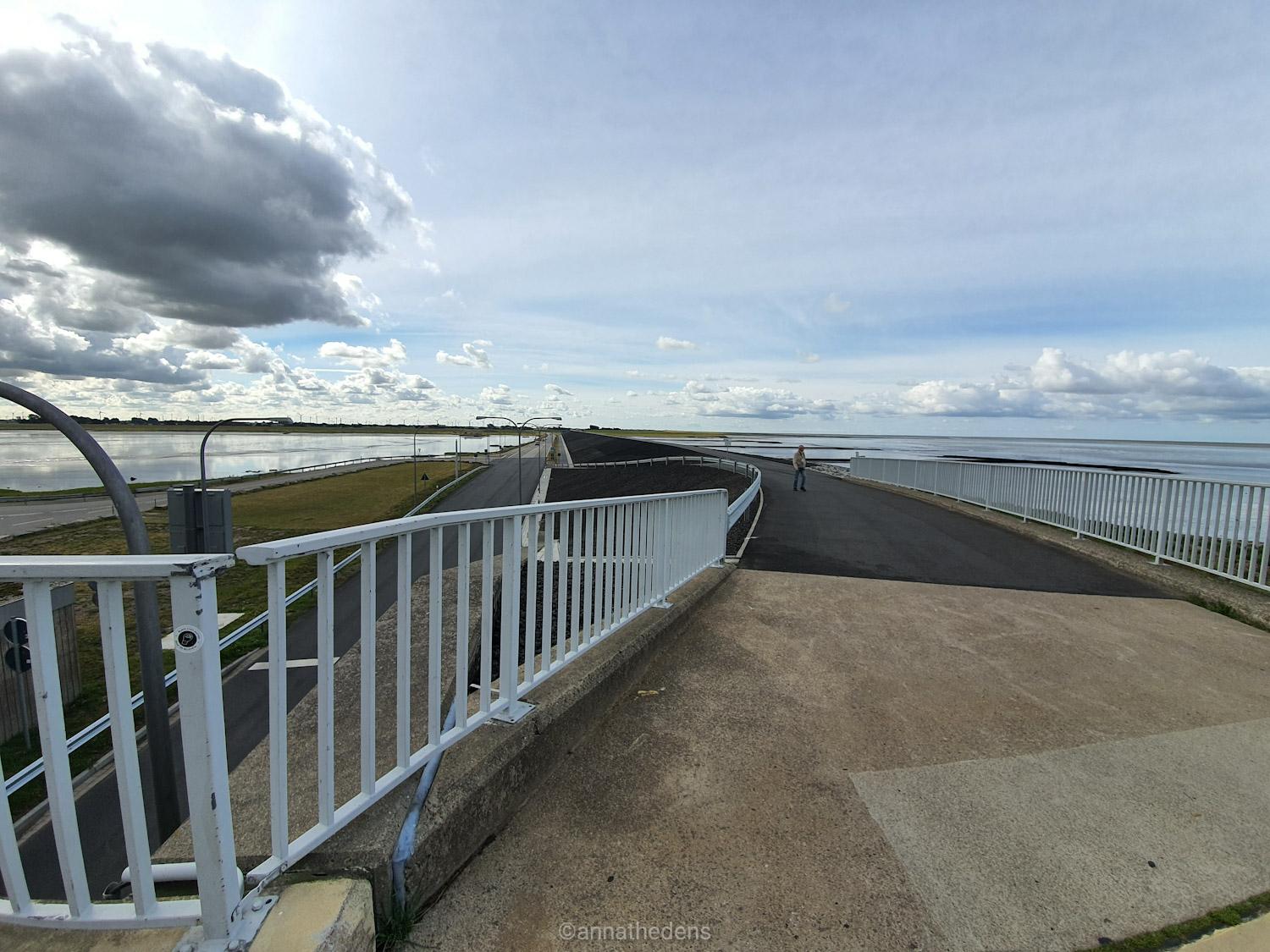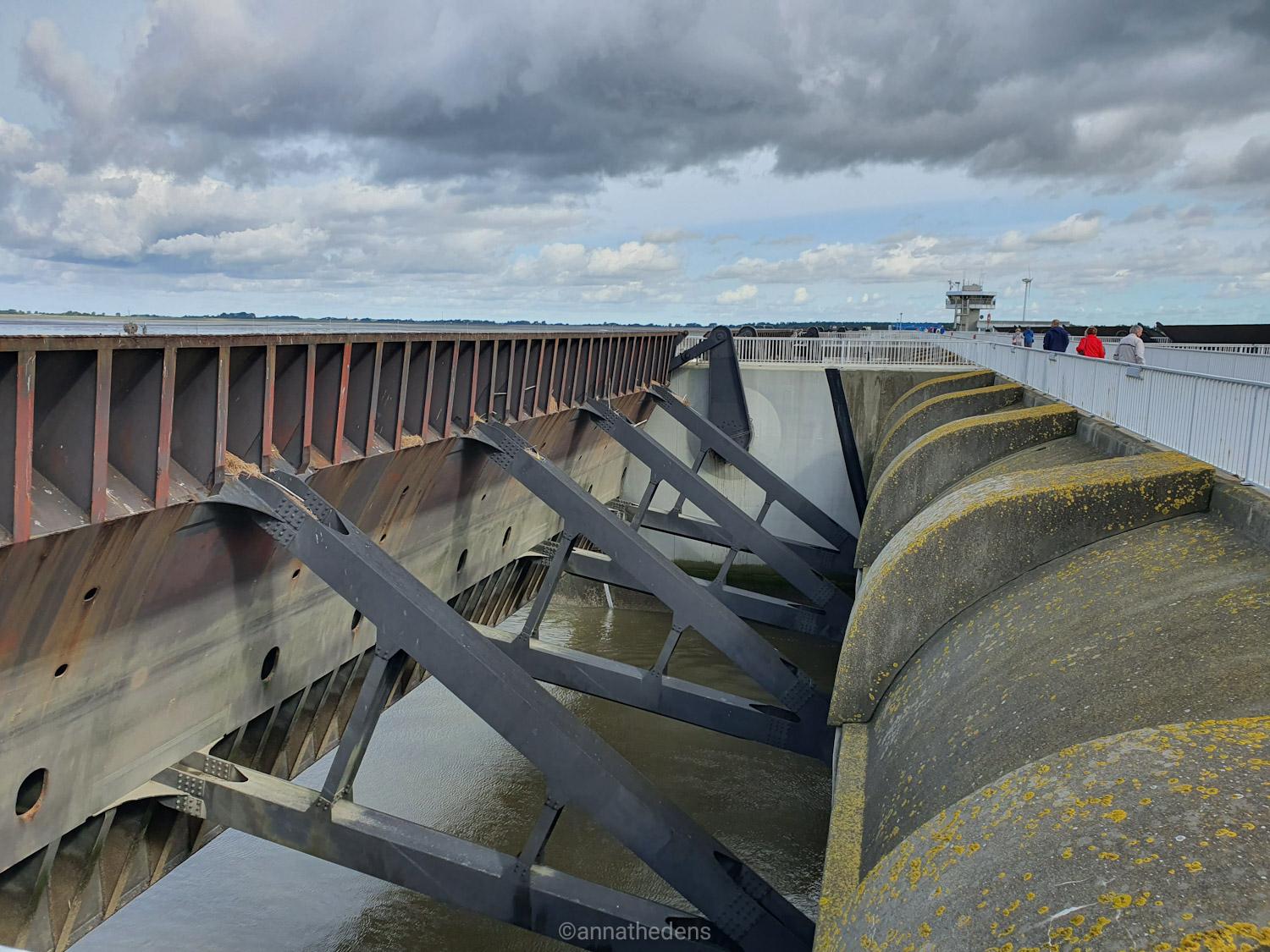 Zunächst sind wir wieder zum Eidersperrwerk geradelt. Die riesigen Flutschutztore flössen einem schon Respekt ein. Wie es da wohl morgen aussieht? Bestimmt nicht so friedlich wie heute. Wir sind jedenfalls froh, dass wir uns morgen weg von der Küste bewegen…na ja, ganz dran sind wir ja eh nicht mehr.