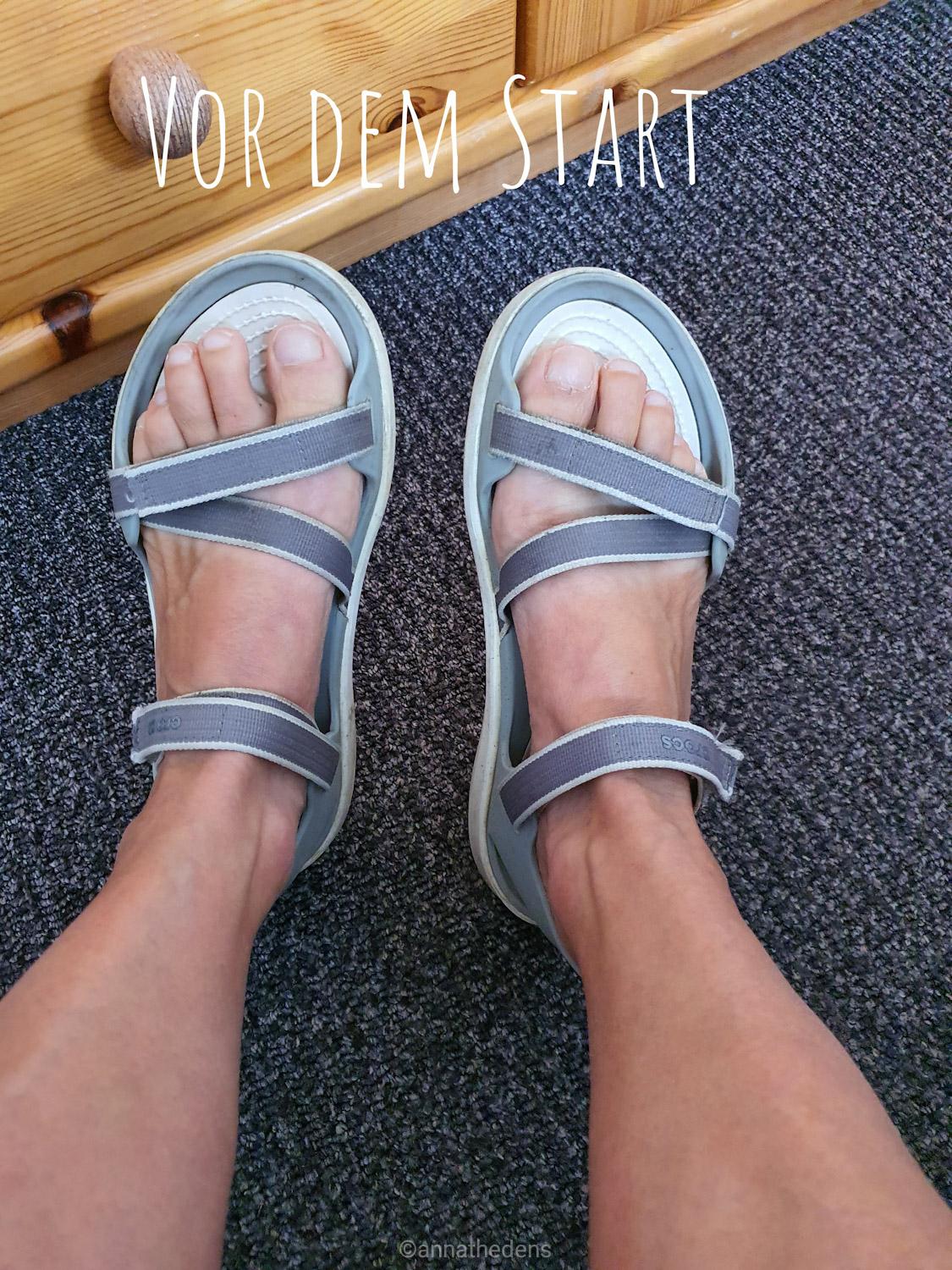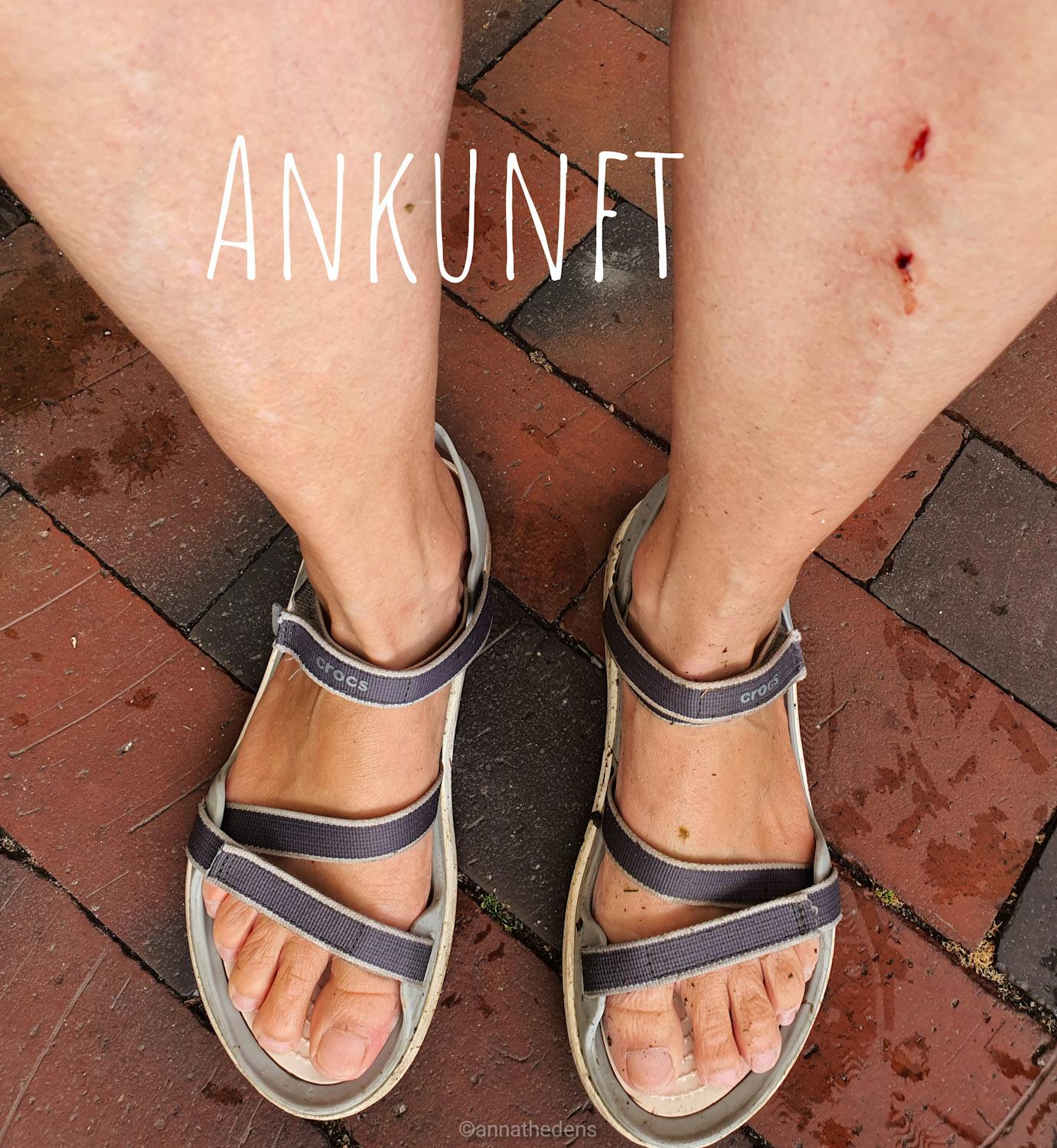 Das war natürlich ein ziemlicher Schock. Quasi während des Frühstücks, das wir aus „Corona-Platz-Gründen“ in unserem sehr kleinen Zimmer einnehmen mussten, ist der Schlappen ohne erkennbare Belastung zusammen gebrochen 😭 Der Tag fing ja gut an 😕