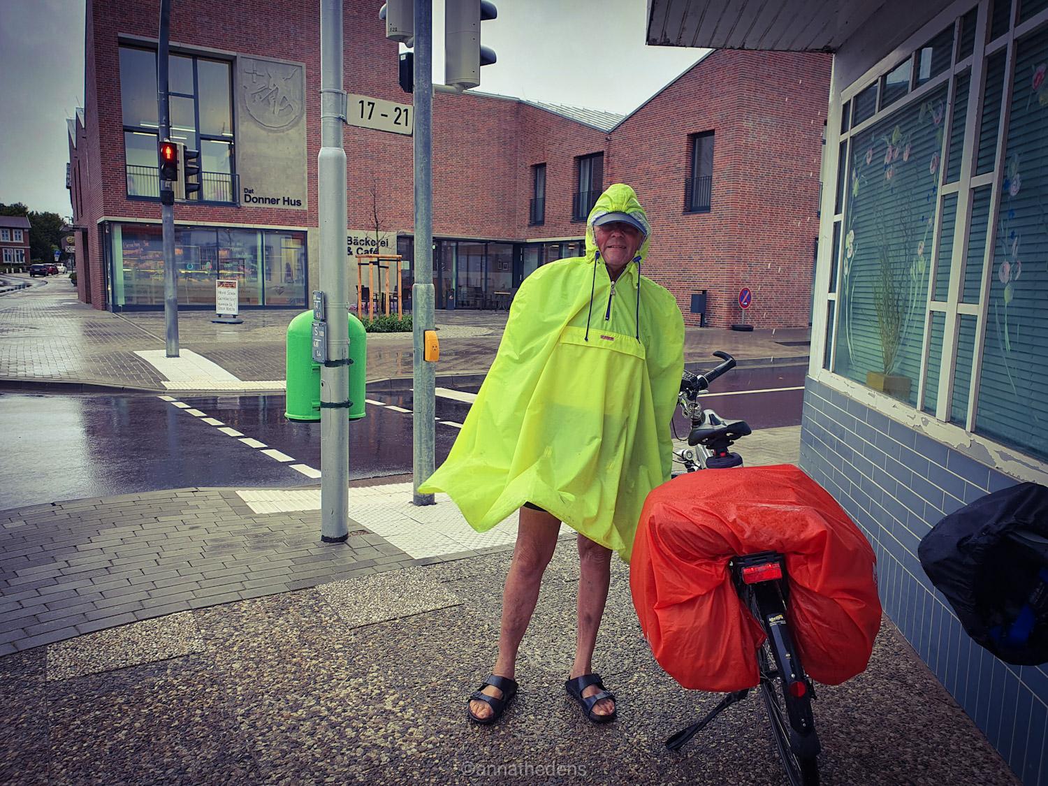 Der nochmalige Weg nach Tönning war dann eher abwechslungsreich. Regencape an, Regencape aus. Die Schauer haben uns nur gestreift und der Spuk war meist nach 5 Minuten vorbei. Vielleicht können wir die Capes bei dem Wind auch mal als Segel benutzen 🤓. Es hat auf jeden Fall gut geflattert 🦇