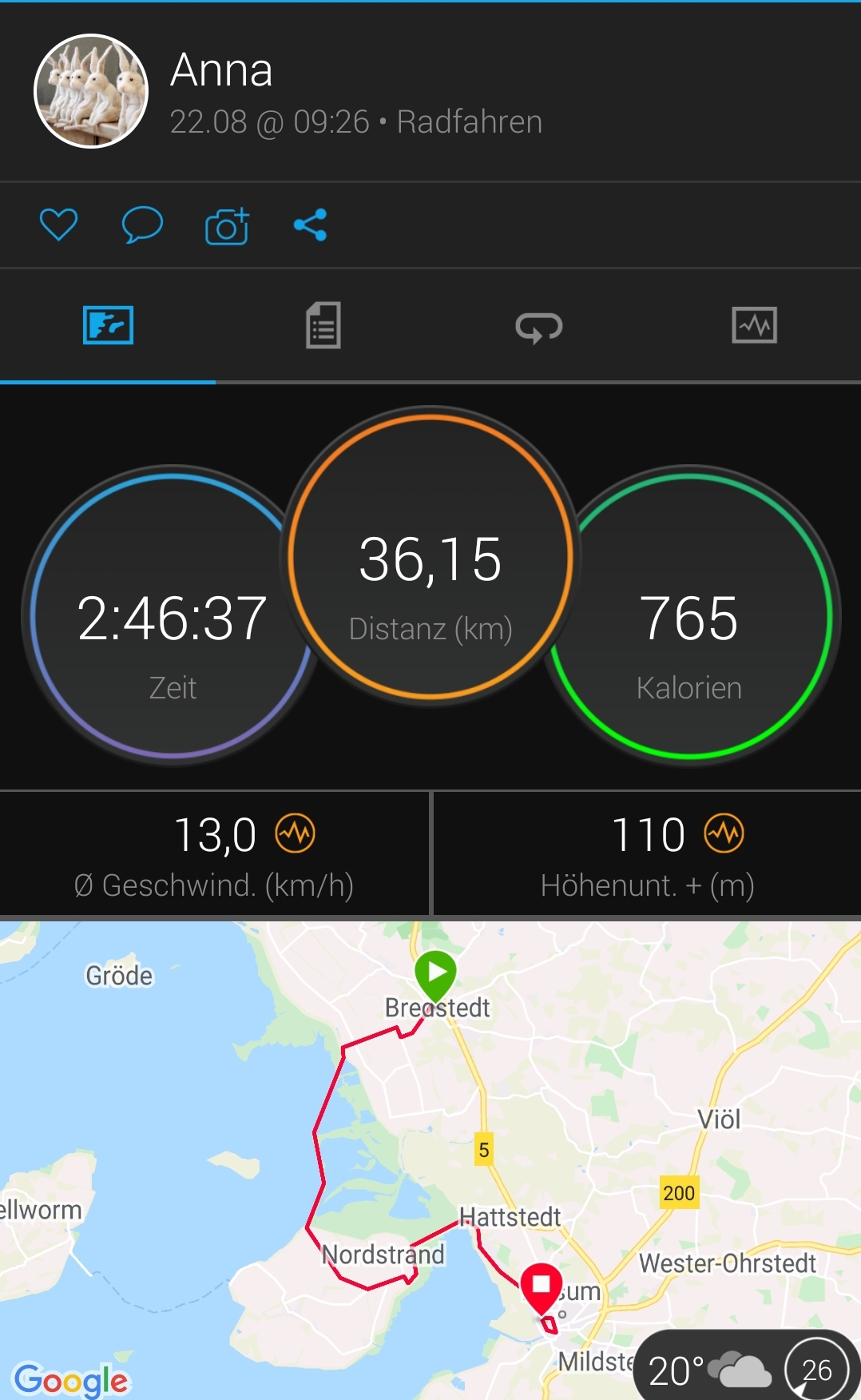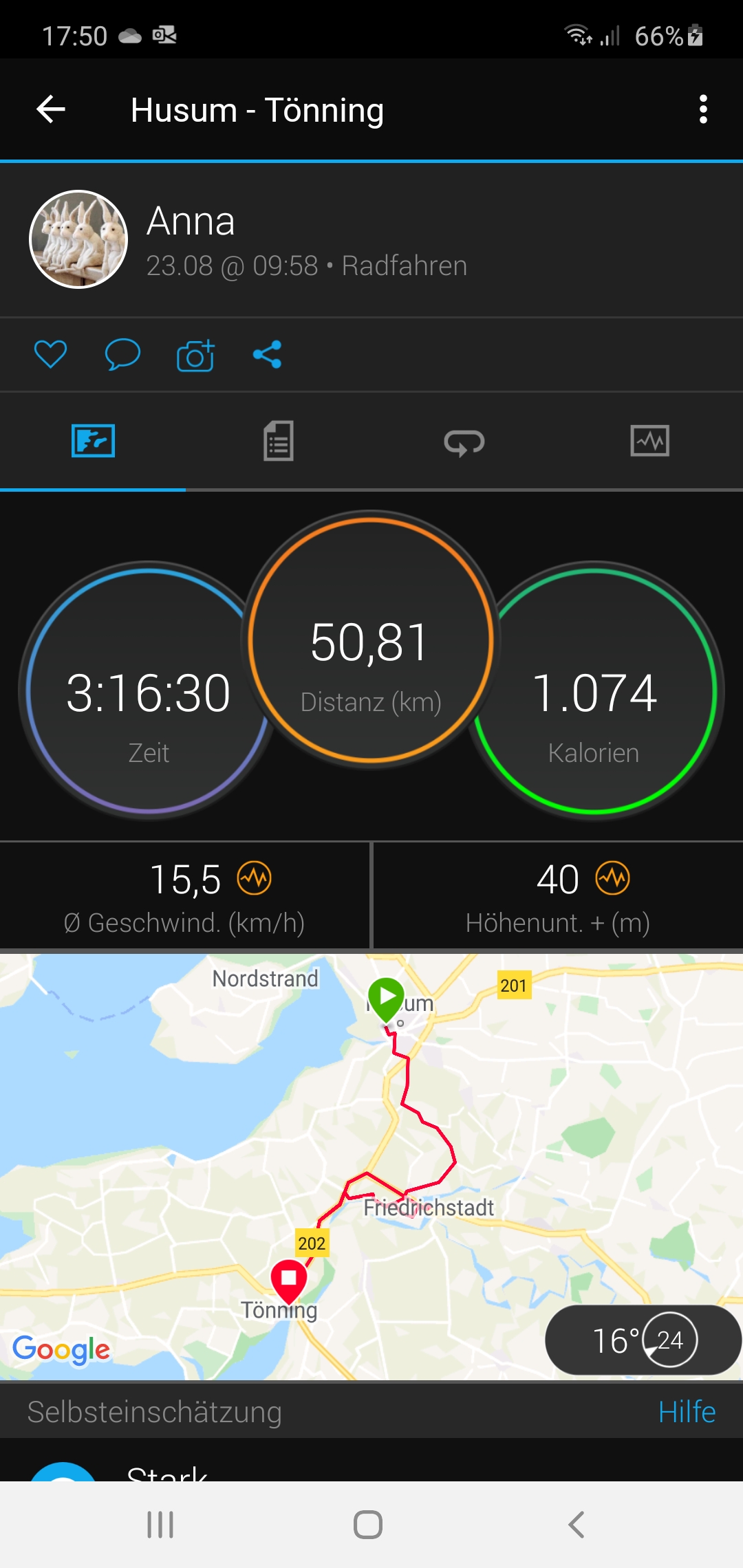 Nach einem Tag mit etwas Gewöhnung an die häusliche Routine, sind wir gestern dann doch gleich wieder eine kleine Runde von 62 Kilometern gefahren. Quasi zum Ausradeln 😅 Rad fahren ist genial, und hat wohl auch einen Suchtfaktor!
