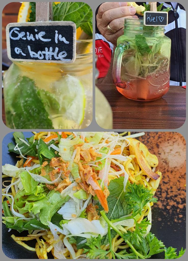 Es sind nur 6 Kilometer vom Kraftwerk bis zum alten Harburger Hafen, aber uns kam es viel länger vor! In einem netten Vietnamesischen Restaurant mit leckeren und „passenden“ Erfrischungen, haben wir uns die nötige Power für die letzten 20 Kilometer geholt 😎