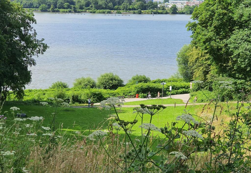 Die nach Teufelsbrück (wieder abwärts) führende Elbchaussee ist zur Zeit natürlich ebenfalls eine Großbaustelle. An der großen und verkehrsreichen Kreuzung am Anleger Teufelsbrück führte uns Birgit, die heute das Garminsagen hatte, in eine kleine unscheinbare Sackgasse (für Autos) 😅 die nach wenigen Metern in einen wunderschönen Wald führte. Kontrastprogramm pur! Da kann man sich fast vorstellen, wie das „beamen“ bei Kaptain Kirk und Scotty sein könnte!