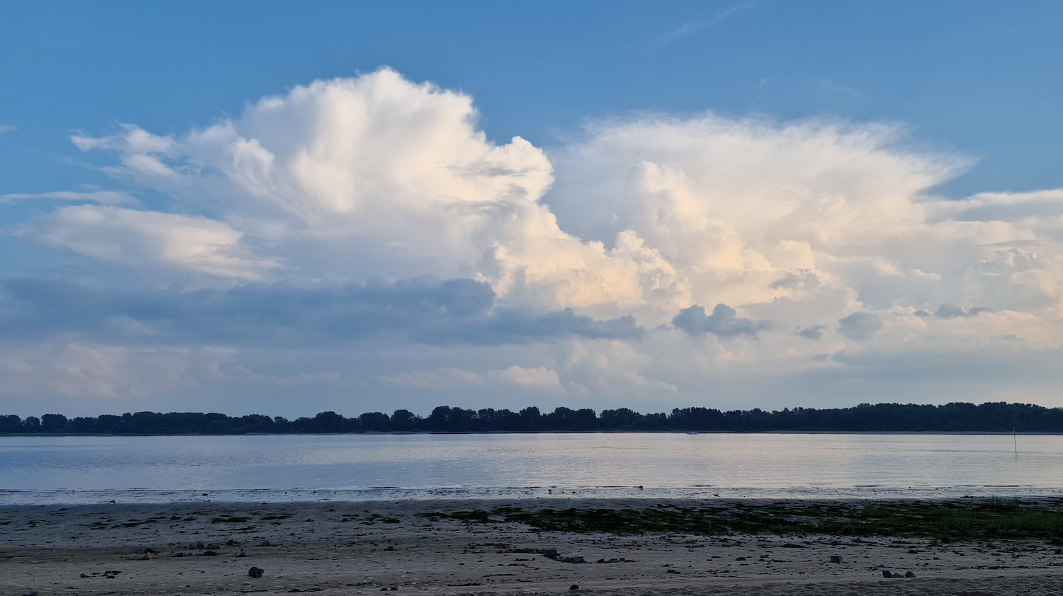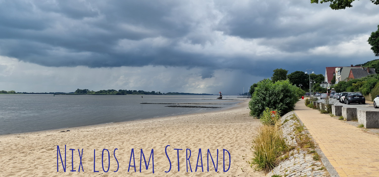 Eine kleine Pause in Övelgönne, wo wir u. a. die letzten Kirschen von zu Hause vernascht haben, vorbei am Alten Schweden, dem riesigen Findling, der beim Bau der vierten Elbtunnelröhre im Weg war. Hier fingen wir uns an zu fragen, wie wir am Besten mit dem bedrohlichen Wolkenverband von links vorne umgehen sollten.