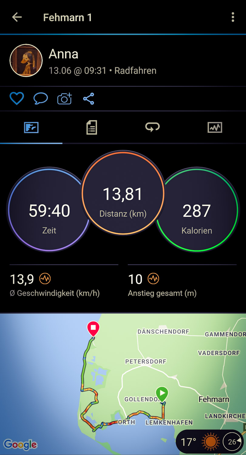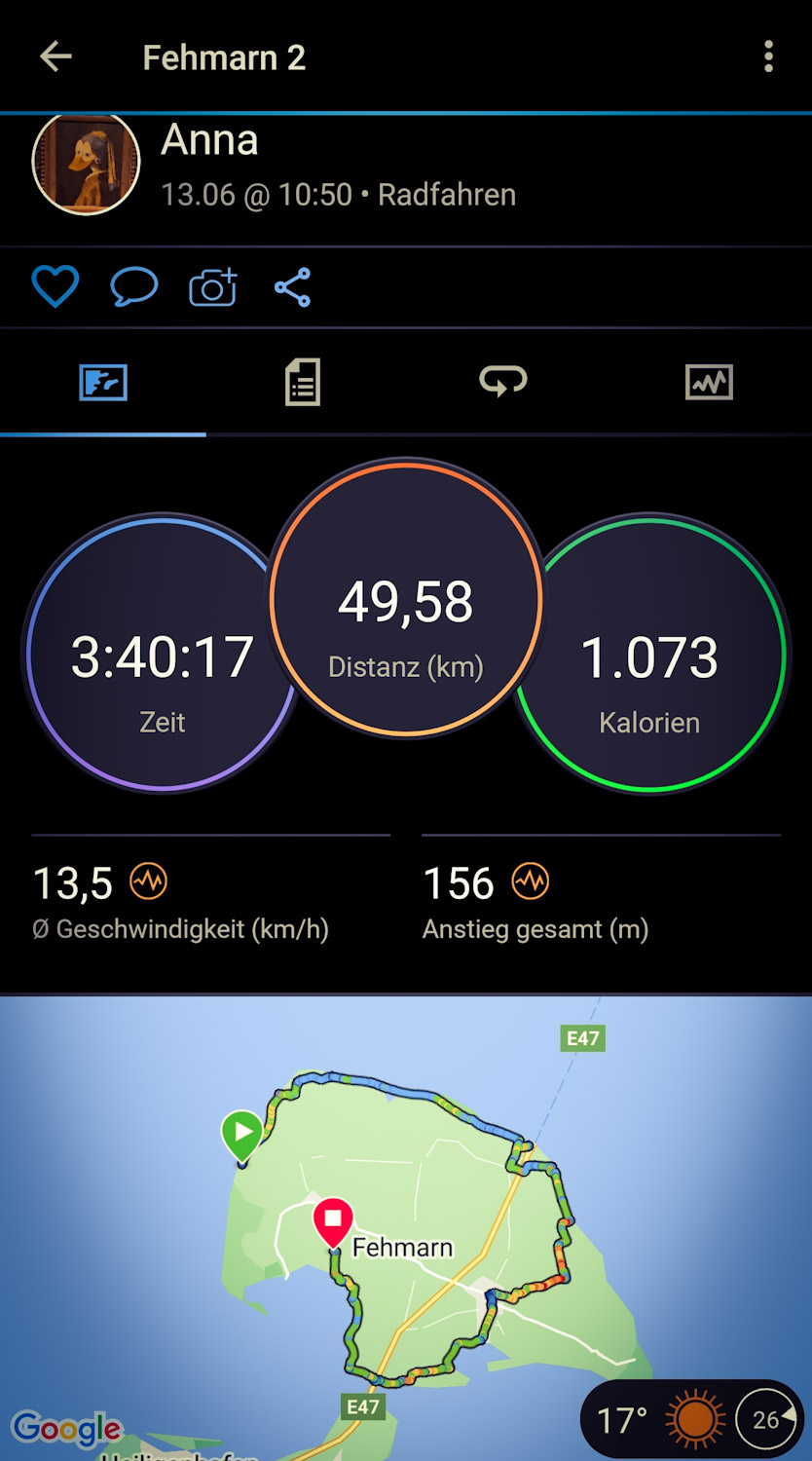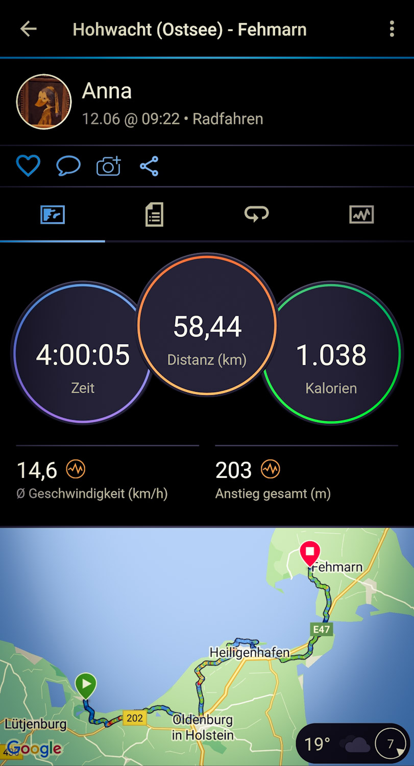 In Harburg haben wir noch ein Erfrischungs Getränk beim Vietnamesen „Hai An“ genossen. Immer wieder toll und sehr belebend bei dem heißen Wetter. Auftanken für die letzten 20 Kilometer. Nun noch etwas Statistik…