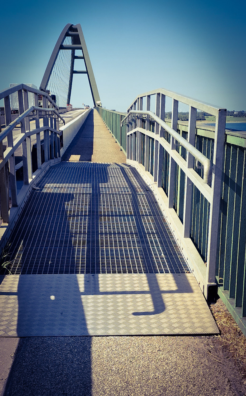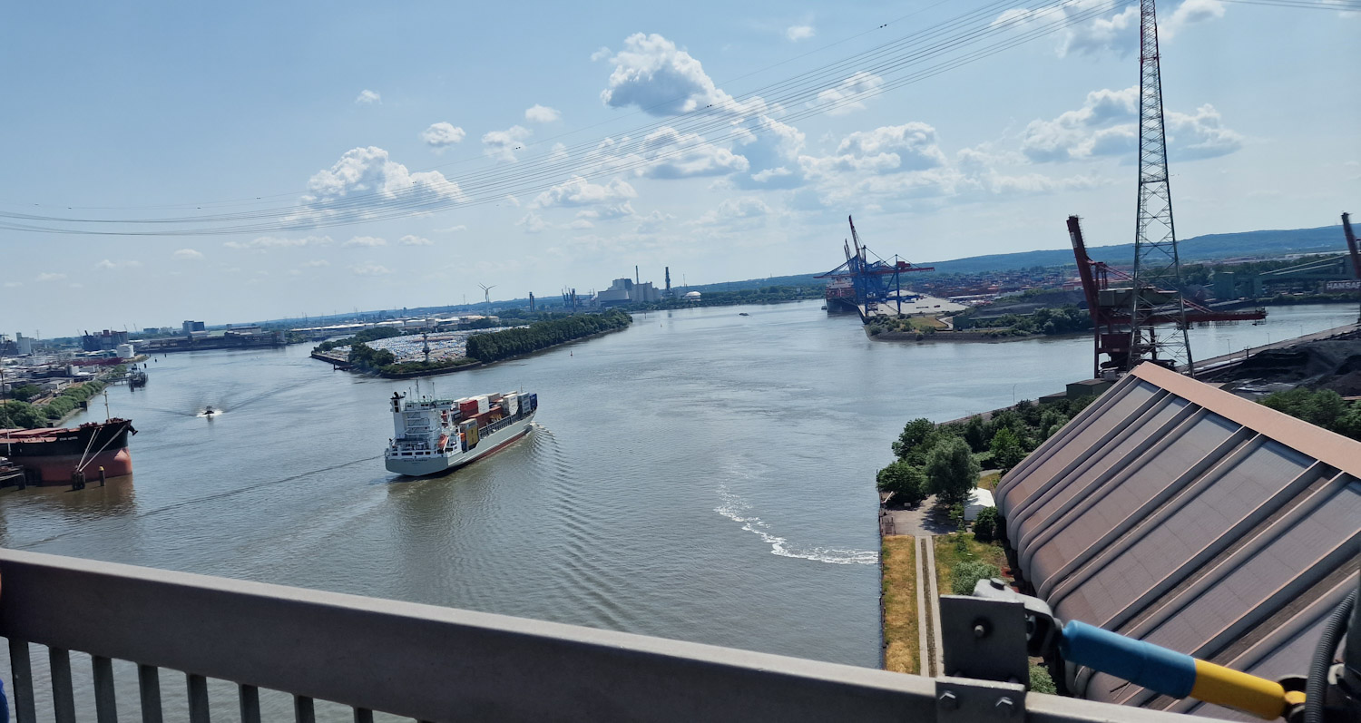Die grandiose Aussicht von der Brücke auf das riesige Hafen Gebiet und auch die Stadt, waren für uns Grund genug unseren körperlichen Widerständen zu trotzen.