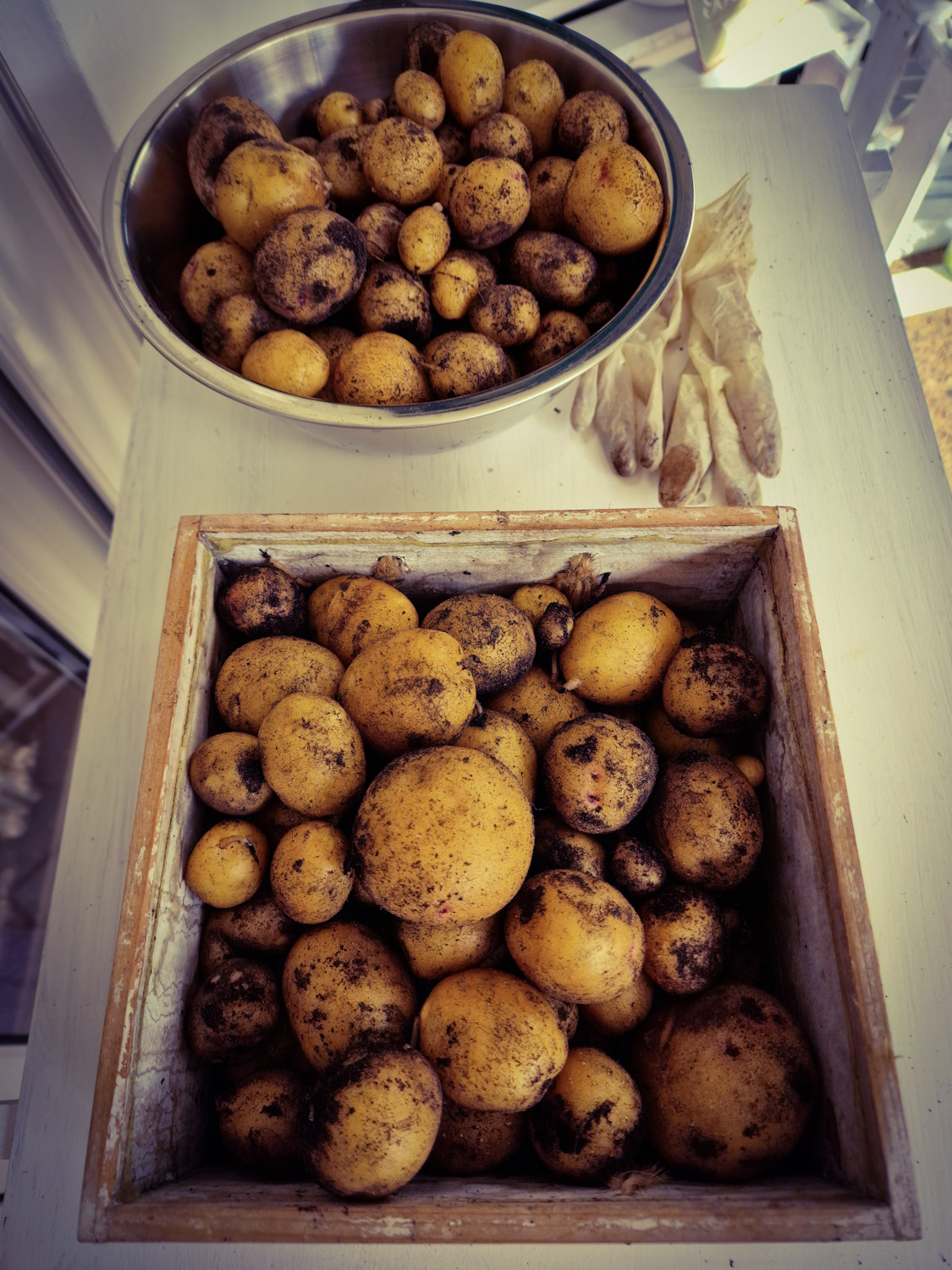 Nach dem unglaublichen Hagelsturm, habe ich die Kartoffeln lieber mehr ins Trockene gestellt. Halbwegs unter Dach entwickelt sich ein richtiger Blätterwald 😎