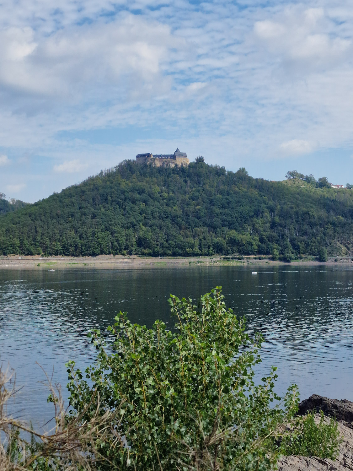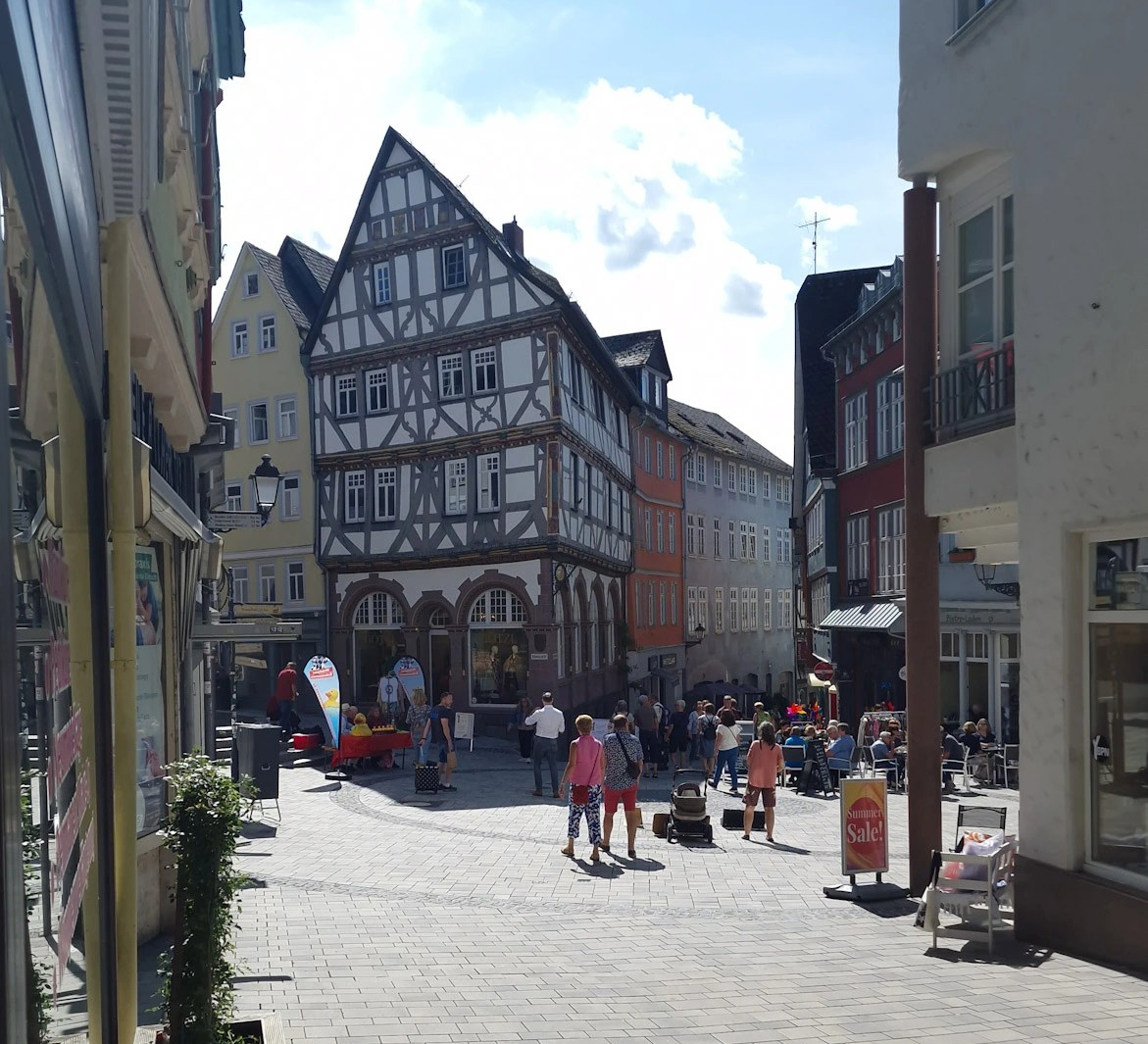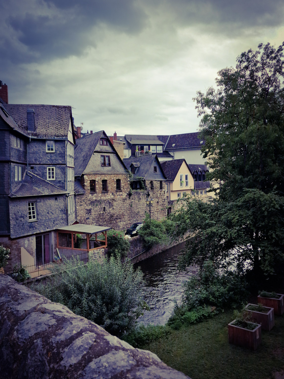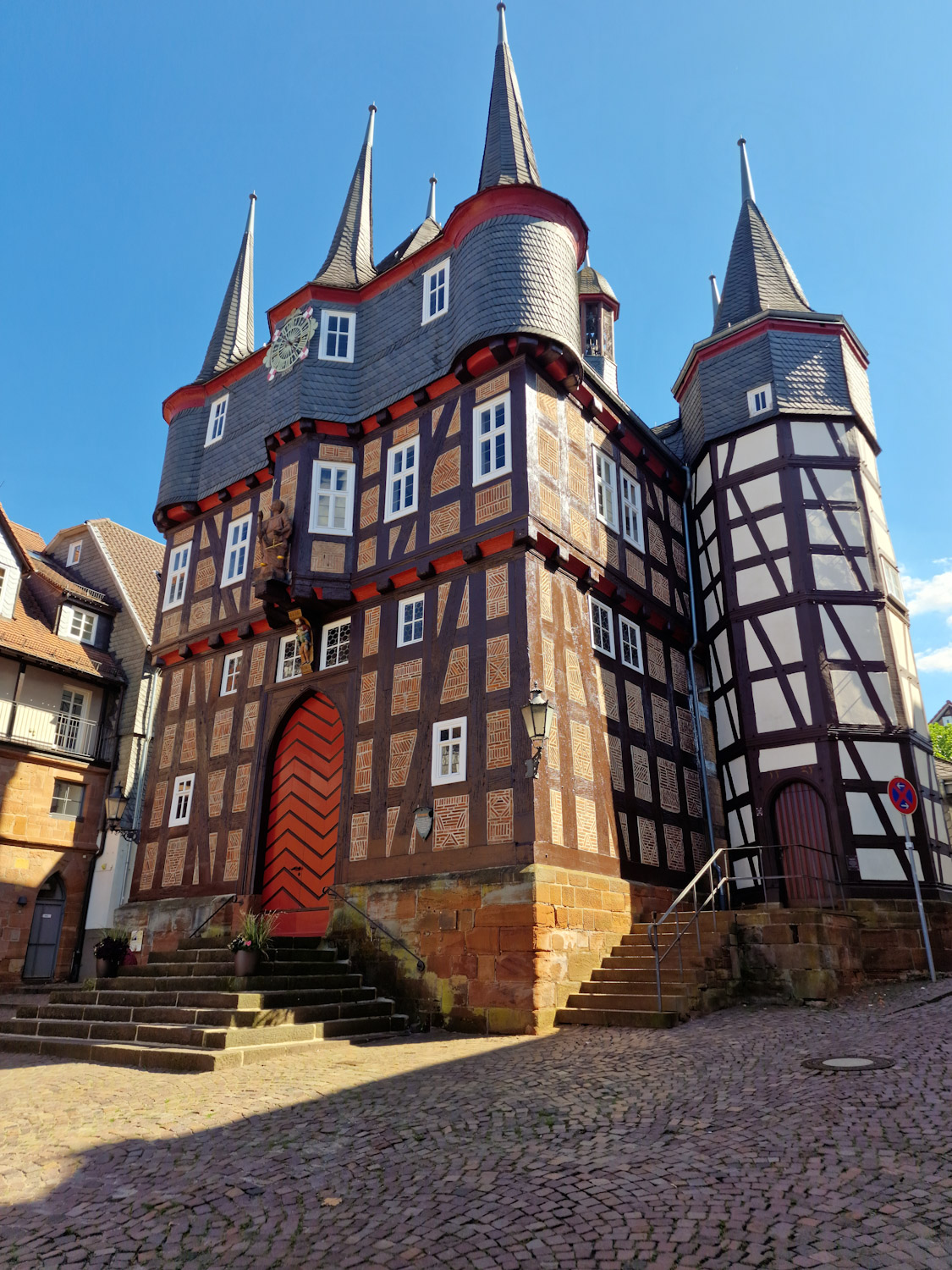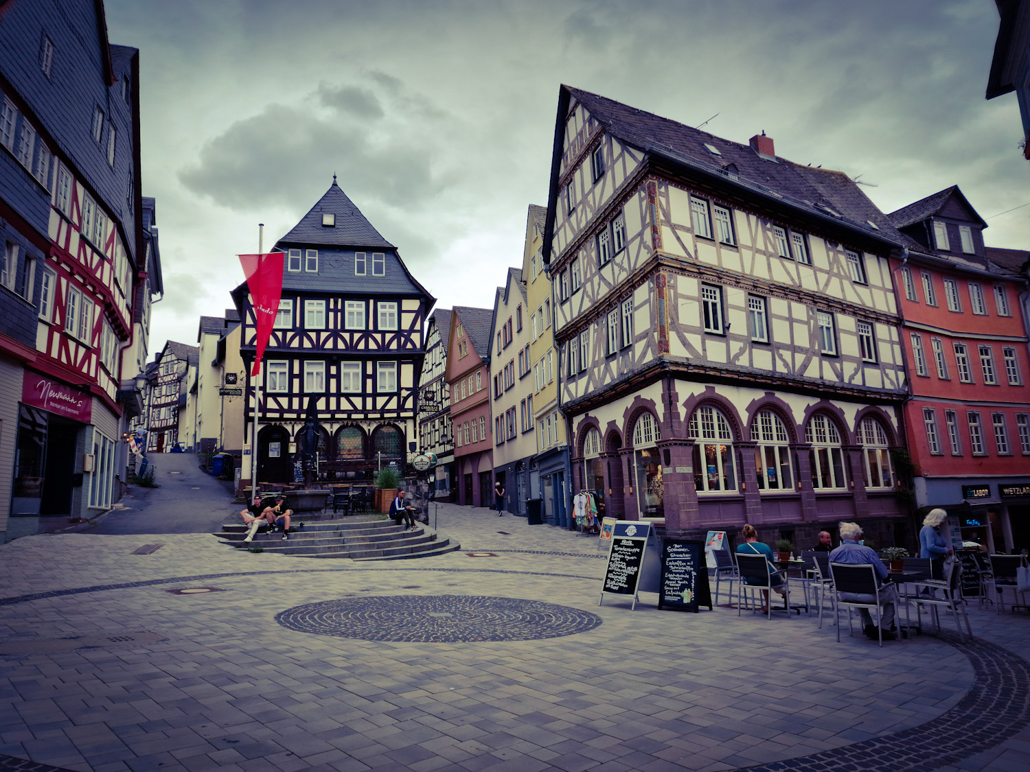 Beim Frühstück hat es geregnet. Stört dann aber überhaupt nicht. Ein paar wenige Tropfen gab es später noch einmal, aber nicht viel, und schon gar nicht lange. Da wir dem Regen entgegengefuhren, war das Thema schnell durch. Die Wegstrecke war heute durchweg positiv…als wir aus Weilburg heraus fanden. Gestern haben wir entgegen unserer sonstigen Bergleistungen, den Fahrstuhl zur Altstadt, bzw. zu unserem Hotel genommen. Heute haben wir festgestellt, daß unser Hotel in den Hang gebaut ist, und dass man auch relativ bequem ohne Altstadt Fahrstuhl dort hin kommt 😅