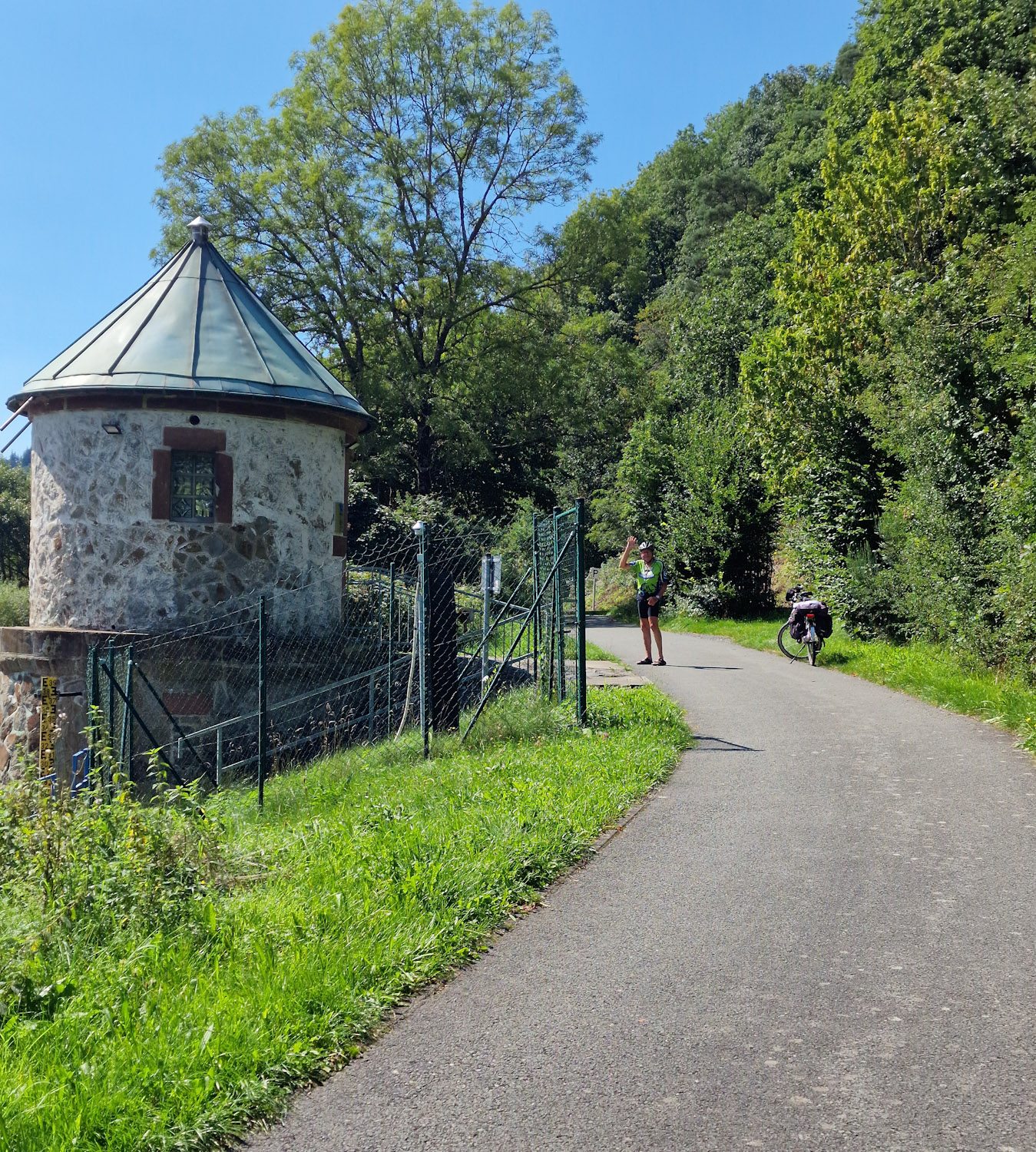 Welch große Entäuschung, als wir wieder auf dem Radweg waren. Wir hatten uns eigentlich schon kurz vor dem Ziel gewähnt…tatsächlich waren es bis Obernhof noch 28 km. Ups! Gestern wäre ich ausgeflippt, heute hat es Spaß gemacht. Mich hat gestern wohl das schwüle Wetter geschafft, allerdings habe ich heute erst wirklich den Unterschied gemerkt…sonst wäre ich bestimmt nicht mit dem Fahrstuhl gefahren😉