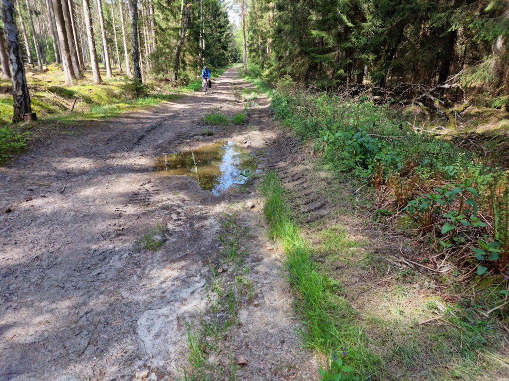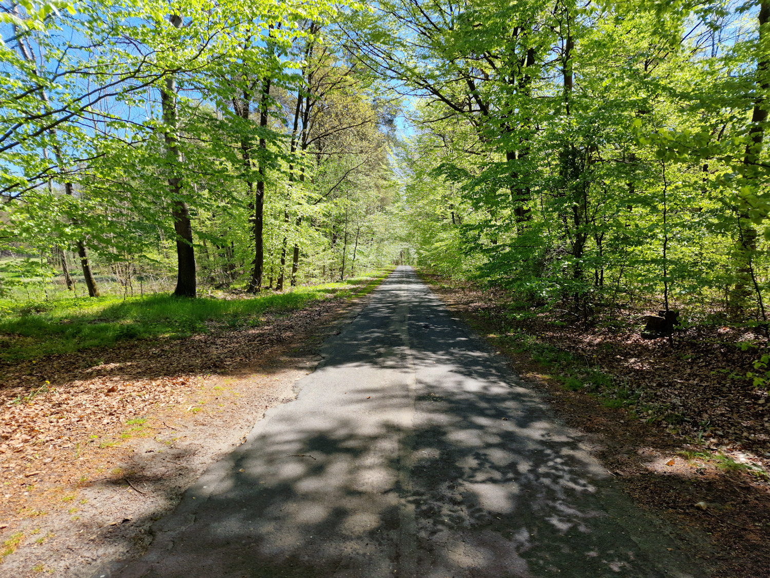 Was die Radwege anging, hatten wir damit das Beste hinter uns🫣. Gott sei Dank war uns das noch überhaupt nicht klar. Wir hatten uns erhofft, im Wald dem starken Wind zu entgehen, was im Prinzip auch geklappt hat, nur die Wege waren nicht sehr hilfreich, wobei es schon viel Fantasie und guter Laune bedurfte, um das Elend überhaupt als Weg zu bezeichnen…weg ja, aber nicht Weg.