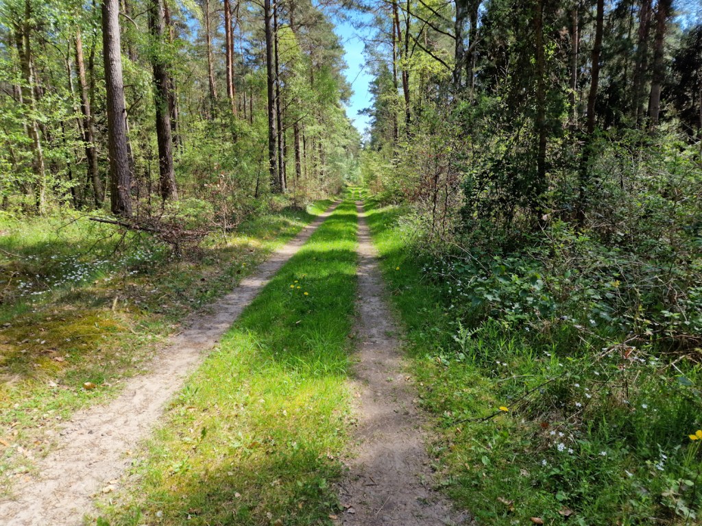 Spargel-Plastik-Feld hinter NeetzeBuckelgräberfeld in Boltersenasphaltierter Waldweg