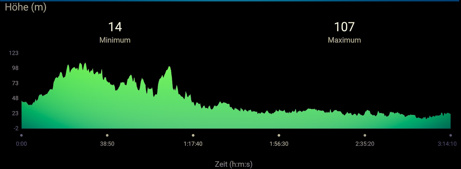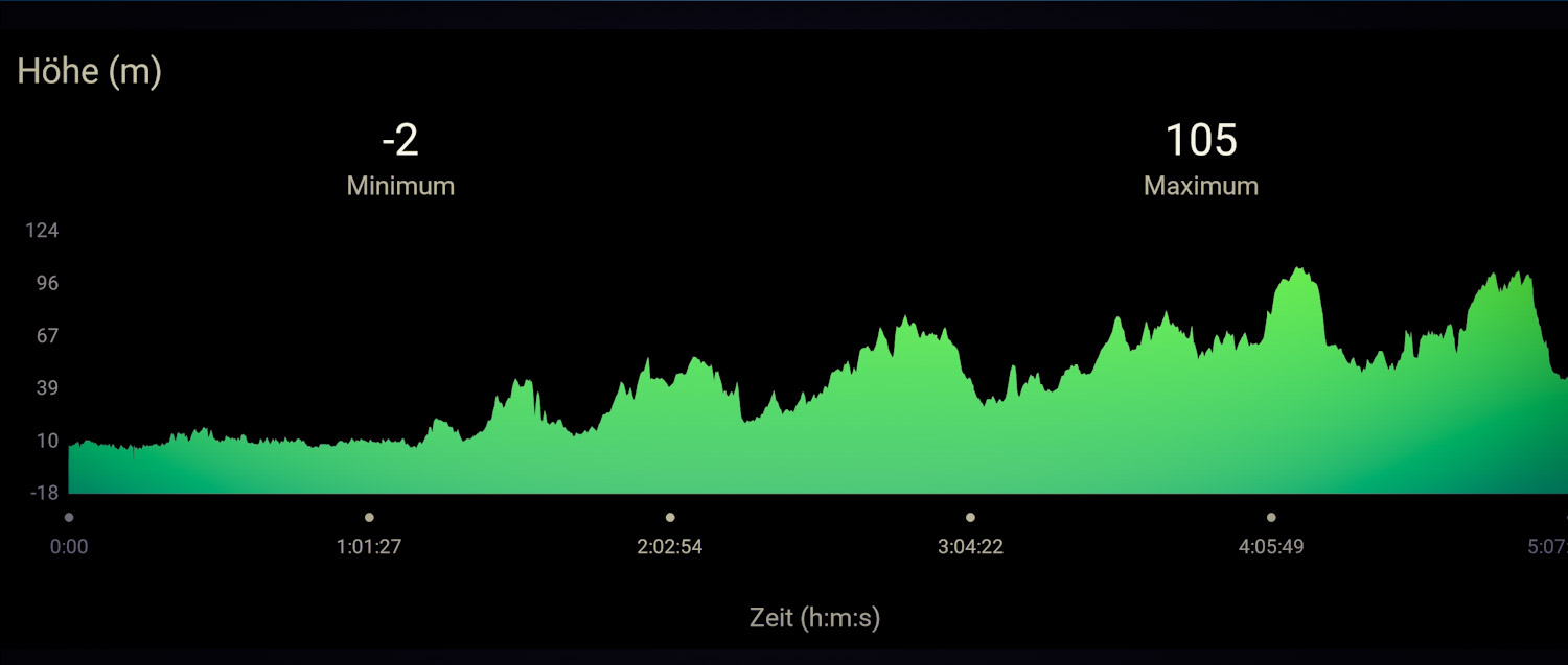 Der strenge Wind – von vorne – Windstärke 👊5 bis 6 – und das 🙄 „östliche Hügelland“ gaben der eigentlich kurzen Entfernung noch einen sportlichen Touch.