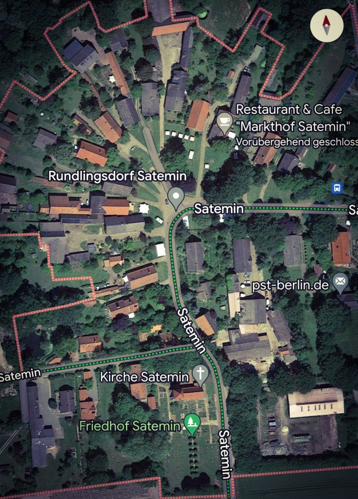 Rundlingsdorf… von obenSatemin mit MilchkanneKirche in Satemin