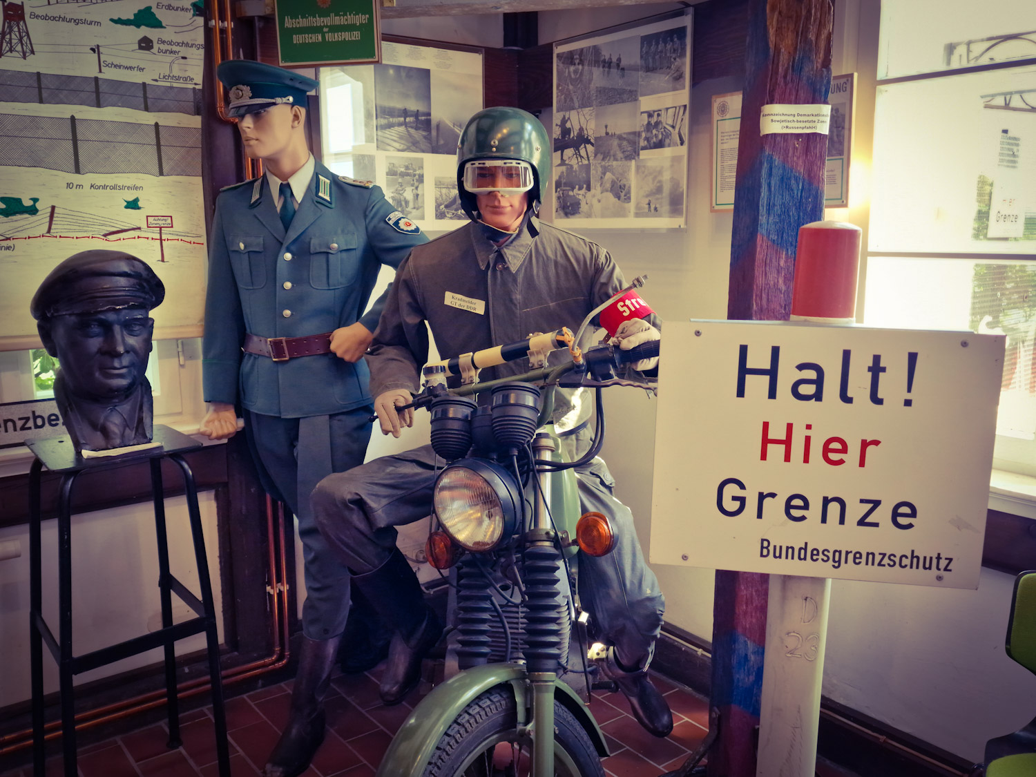 Nach einem kleinen Imbiss aus der Not Verpflegung, ging es auf besser werdenden Wegen zur Elbe…kein Café, kein Eiswagen…nix! Die ganz Gegend ist gastronomisch einfach Tot. Im Grenzland Museum in Schnackenburg haben wir schließlich gegen eine Spende einen Kaffee bekommen. Puh! Das Museum zeigt anschaulich die Unmenschlichkeit der damaligen deutsch-deutschen Grenze. Ein lohnenswerter Besuch…nicht nur wegen des Kaffees.