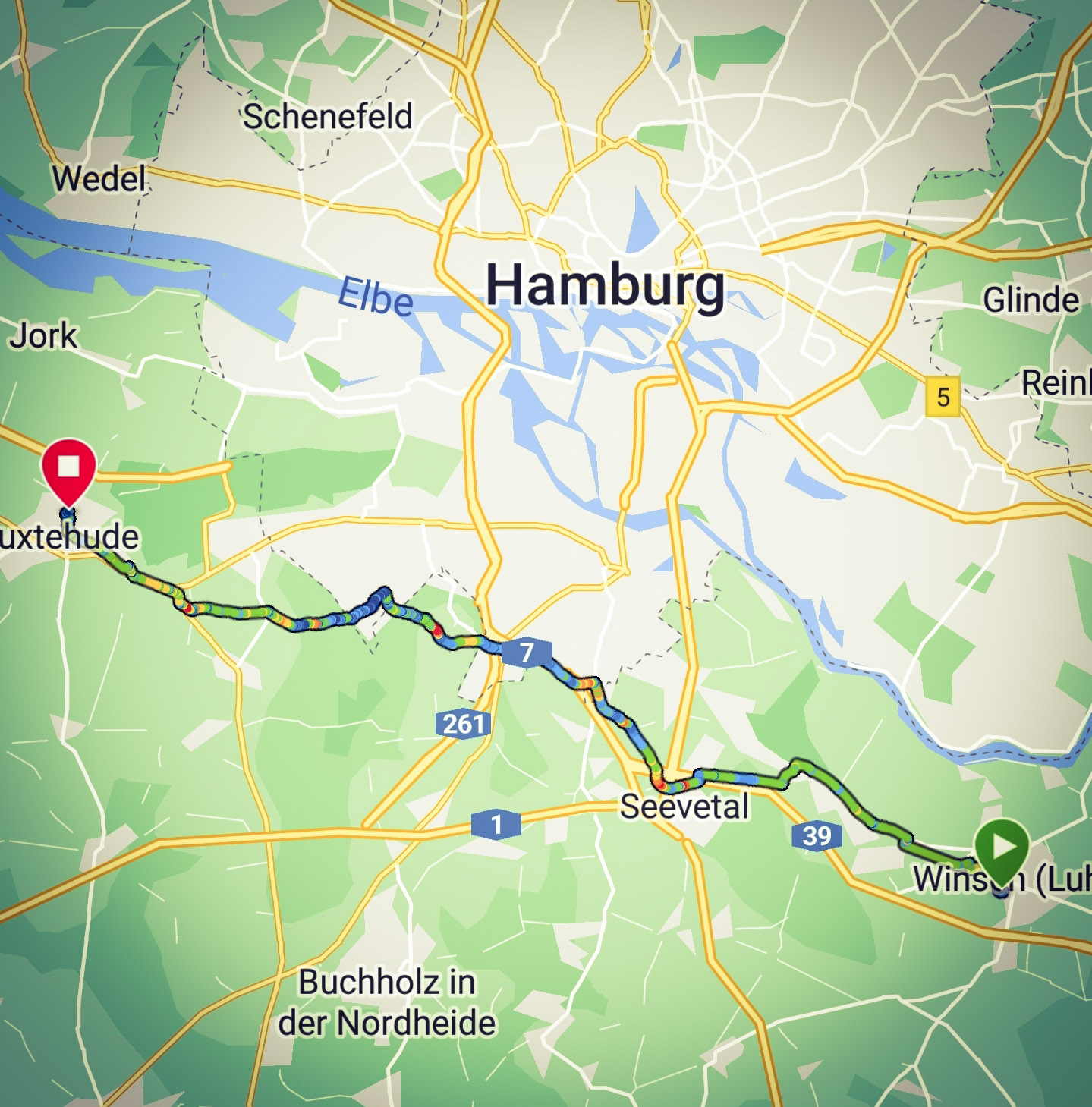 So weit, so gut. In die Suchzeile sollte aber tunlichst „Rundlings Dörfer im Wendland“ eingeben werden und nicht wie ich es gemacht habe, einfach so „Göhrde“ …nur weil Uwe immer von der Göhrde Tour spricht. Gibt man nur Göhrde in die Suchleiste ein…und schaut man sich dann die Auto-Vervollständigung an…so taucht sehr prominent „Göhrde Morde“ auf! Doch nicht etwa diese Göhrde, wo wir hin wollen? Die vor unserer Haustür!…vielleicht gibt es in Bayern auch eine Göhrde? Aber NEIN! Es ist die Göhrde im Wendland. Wikipedia ist für Details sehr auskunftsfreudig. So ist zu lesen, dass der „erste“ Doppelmord im Jahr 1989 stattfand…(aber eher Ende Mai). „Der Täter entwendete den Opfern einen Picknickkorb und nahm die Autoschlüssel des Paares an sich. Mit deren Honda Civic flüchtete er aus der Göhrde und ließ den Wagen 300 Meter vom Bahnhof in Winsen an der Luhe, eine kleine Stadt im Speckgürtel Hamburgs, stehen“ Als ich das Uwe vorgelesen habe, vermerkte er lakonisch, das der Fundort des Autos die Bäckerei sei, wo wir regelmäßig eingekauft haben…bis er Pleite gemacht hat.