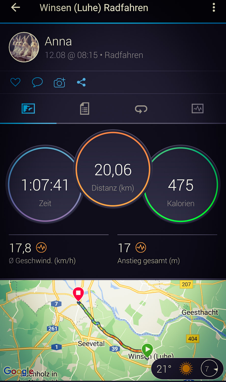 Zum Schluss noch die Statistik…die kleine Statistik. Unser bisheriger Tagesdurchschnitt ist sonst deutlich höher, aber gemütlich können wir auch. Heute waren wir auf Besichtigungs Tour…morgen sind wir auf Gartenparty in Neumünster.