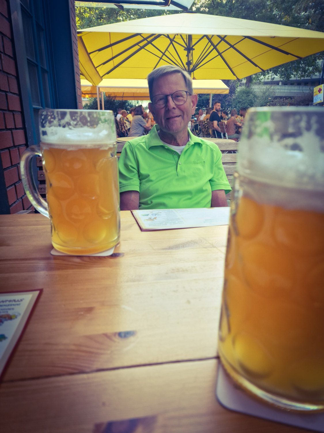 Nun lassen wir den warmen Abend im Wuppertaler Brauhaus ausklingen…die Mass Radler zu heben ist eine Herausforderung, die man genießt.