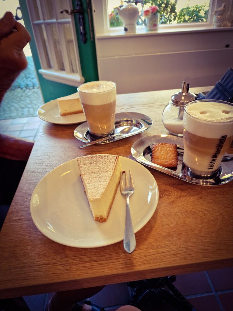 Wir haben uns das Ganze einfach schön geredet. „Der Wald sieht ja wildromantisch aus.“ „18% runter, 10% rauf, da bleiben ja nur 8% übrig.“ Jammern bringt einen nicht den Berg rauf…Käsekuchen schon eher. Und es ist auch nicht verkehrt „oben“ an der nächsten Tanke auch noch ein Eis zu genießen.